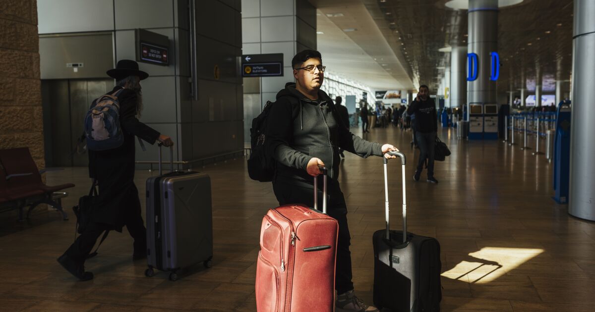 At Israel’s Ben Gurion airport, Levy waits for his flight. After three years in Israel, he’s joining his brother Mendy in Canada.