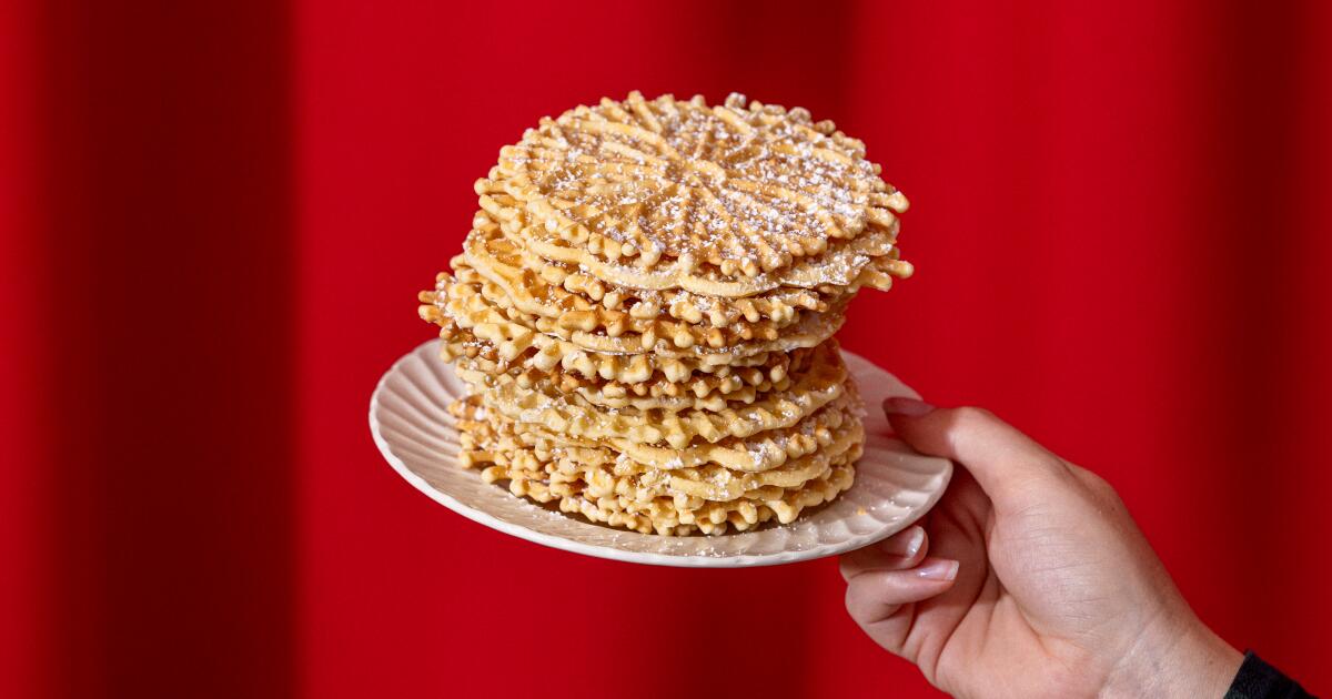 Crisp and light as air or chewy and sturdy, the consistency of the iconic pizzella depends on preference and pizzelle iron. These flat, round and delicate cookies are especially traditional to the holiday season, and add a festive touch to the table when dusted with powdered sugar. Seasoned with anise, citrus or simply vanilla — as Garibaldina Society members and grandmother-granddaughter team Lupe and Cecilia Del Rivo prefer — these Southern Italian cookies are highly customizable.